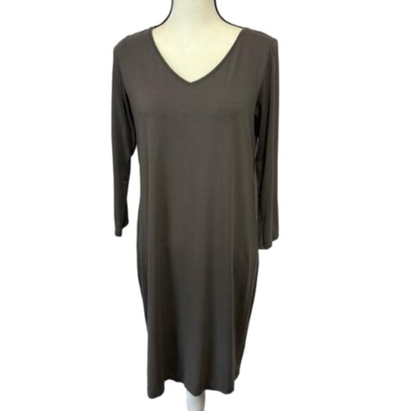 Eileen Fisher Viscose/Spandex V Neck 3/4 Sleeve Dress Size Medium #1679