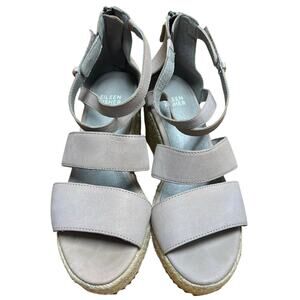 Eileen Fisher Wali Espadrille Sandal Taupe Strappy Wedge Leather Size 7 1/2