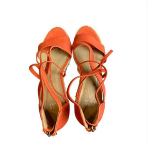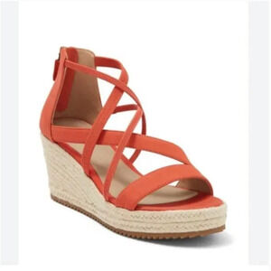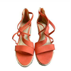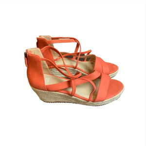 Eileen Fisher Wanda Espadrille Sandals 6 NWOT Wedge Strappy Leather Orange Tan
