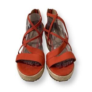 Eileen Fisher Wanda Espadrille Sandals Size 11 Wedge Strappy Leather Orange Tan
