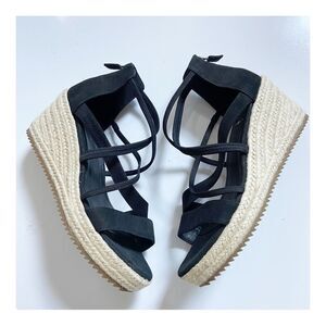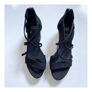 Eileen Fisher Wanda Tumbled Nubuck Espadrille Wedge Sandals size 8.5