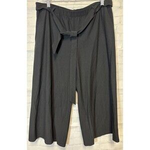 Eileen Fisher Washable Crepe Pants Womens size Medium Pull On Wide Leg Crop Black with Belt