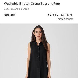 Eileen Fisher Washable Stretch Crepe Straight Pants Black Women's Medium