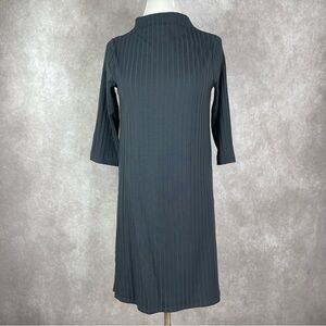 Eileen Fisher Washable Stretch Rib Funnel Neck 3/4 Sleeve Jersey Dress Blue XXS