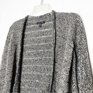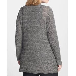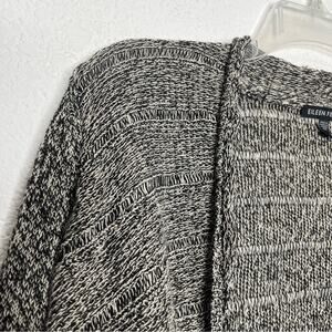 Eileen Fisher Washable Wool & Linen Stripe Cardigan Black & Cream XS
