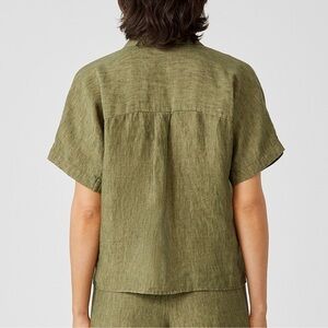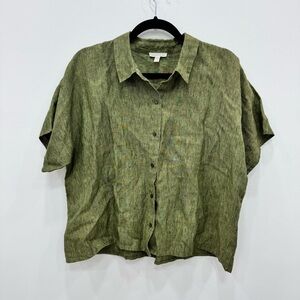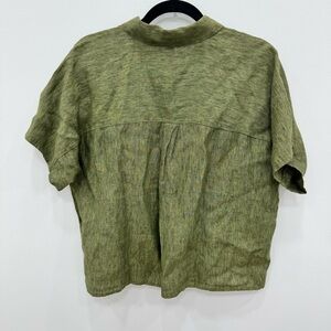 Like New excellent condition Eileen Fisher Washed Organic Linen Delave Short-Sleeve Shirt Green Sz Medium
