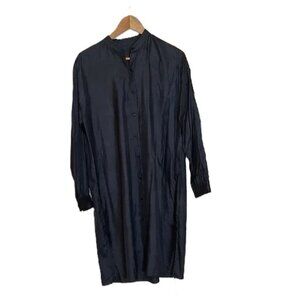 Eileen Fisher Washed Silk Mandarin Collar Shirt Dress Ocean Midi Dress