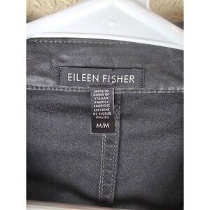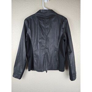 Eileen Fisher Waxed Cotton Italian Fabric Black Moto Jacket M Classic