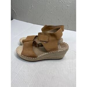 Eileen Fisher Weslia Wedge Espadrille Sandals Brown Leather Size 8