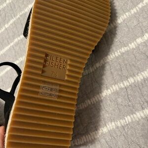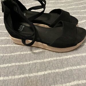 Eileen Fisher Wesson Black Suede Wedge Espadrilles Cross Cross Ankle Strap