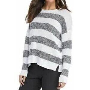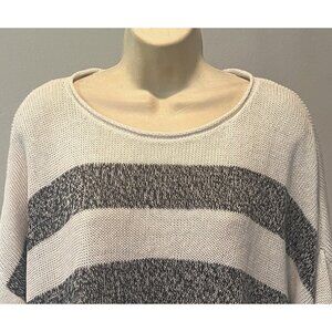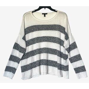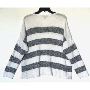 Eileen Fisher White Gray Stripes 100% Organic Linen Knit Sweater Pullover
