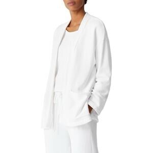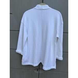 Eileen Fisher White Organic Cotton Open Front Pockets Boxy Jacket Cardigan XS