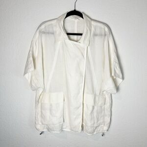 Eileen Fisher White Organic Linen Jacket Snaps Medium Oversized Lagenlook