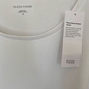 Eileen Fisher White Pima Cotton Stretch Jersey Jewel Neck Top NWT Plus Size 2X