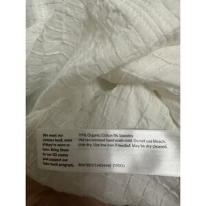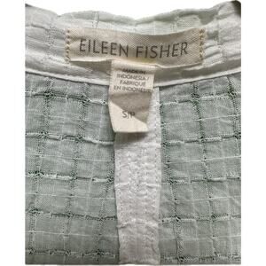 Eileen Fisher White Textured Grid Split Neck Tunic Top Size Small