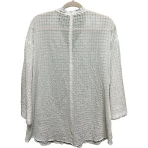 Eileen Fisher White Textured Grid Split Neck Tunic Top Size Small