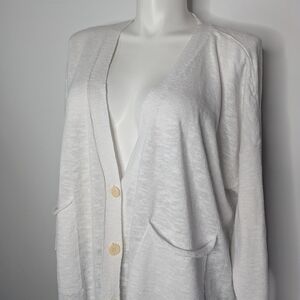 Eileen Fisher White V Neck Long Sleeve Button Up Cotton Linen Cardigan 3X. Like new.
