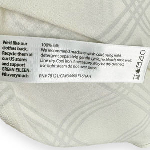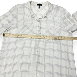 Eileen Fisher 100% Silk White Window Pane Button Down Tunic Top Size Large