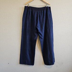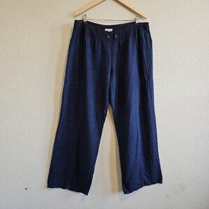 Eileen Fisher Wide Leg Organic Linen Navy Blue Pull On High Rise Relaxed Pants L