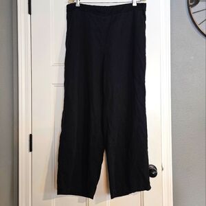 Eileen Fisher Wide Leg Pants Elastic Waist Size Large Black