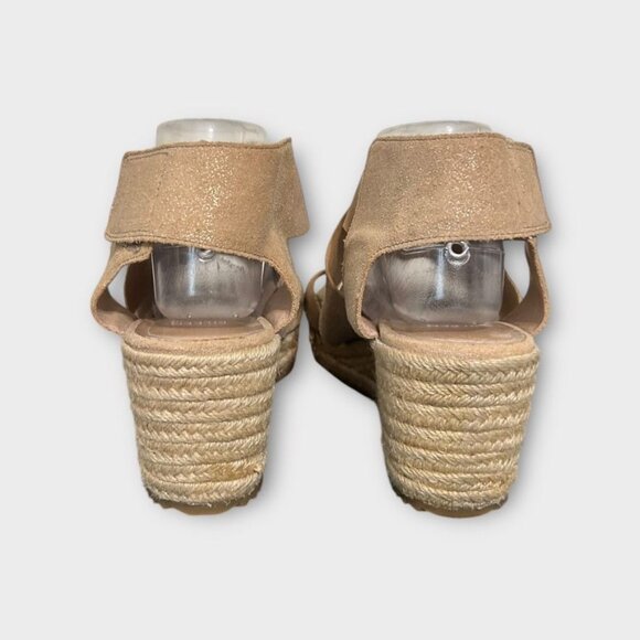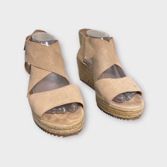 Eileen Fisher Willow Sandals 10 Beige Nubuck Suede Leather Espadrille Wedge