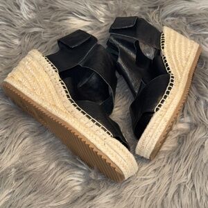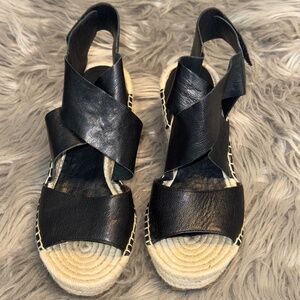Eileen Fisher Willow Tumbled Leather Wedge Espadrille Black Cream Size 7.5