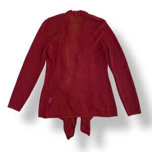 Eileen Fisher Wine Red Linen Blend Open Knit Open Front Ruffle Cardigan Size XS