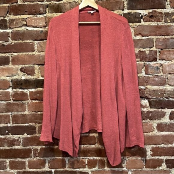 Eileen Fisher Woman 100% Organic Linen Open Front Cardigan Coral Orange 1X