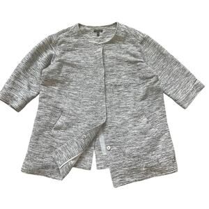 Eileen Fisher Woman 1X Jacket | Textured Knit, Gray White, Pockets, Cotton Blend