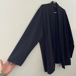 Eileen Fisher Woman Crepe Cardigan Jacket Size 3X Blue Open Front Minimalist