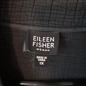 Eileen Fisher Woman Open Front Textured Crepe Jacket Plus Size 1X Black Career