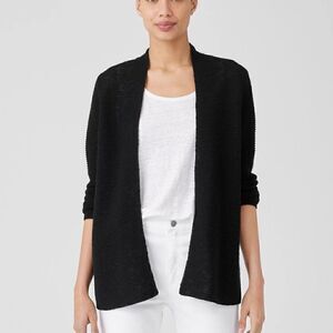 Eileen Fisher Woman Size 1X Black Textured Cotton Blend Notched Collar Cardigan.