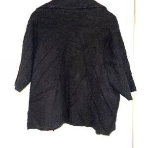 Eileen Fisher Woman size 1X black textured cardigan with notched collar, elbow length sleeve and open front. Size 1X.