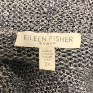 Eileen Fisher Woman silver gray linen knit open drape long cardigan sweater 2x