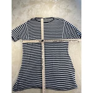 Eileen Fisher Womans Round Neck Stripped Organic Linen Loose Fit Top Large