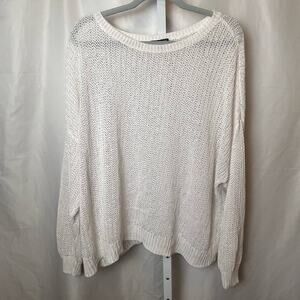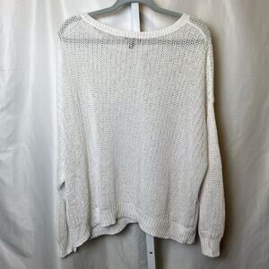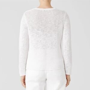 Eileen Fisher Women 3X Organic Linen Slub Open Knit Boxy Sweater White Sheer
