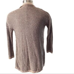 Eileen Fisher Beige Black Striped Open Front 100% Organic Cotton Knit Cocoon Cardigan Sweater Women’s Size Small. This piece is oversized, with a 20” chest flat lay, 40” around and a length of 39”. This cardigan is preowned and in very good condition.