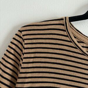 Eileen Fisher Women L Brown Black Striped Organic Cotton Short Sleeve T-Shirt
