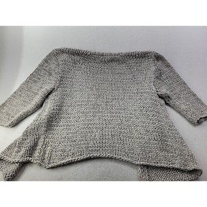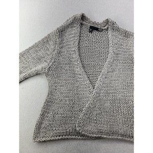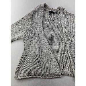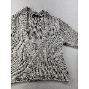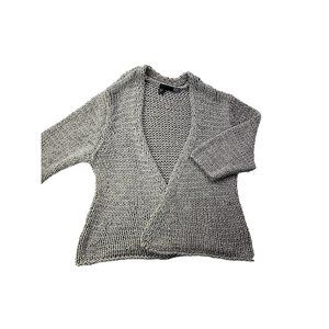 Eileen Fisher Women M Gray Open Cardigan Loose Knit Italian Yarn Sweater Crop