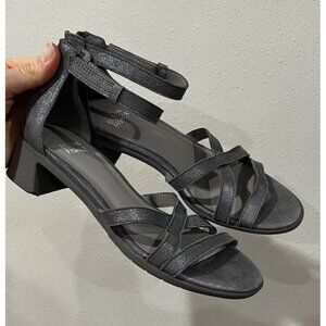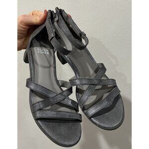 Eileen Fisher Women Noni Block Heel Strappy Sandals Size 5.5 Gray Ankle Strap
