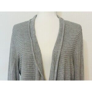 Eileen Fisher Women's Size L Ribbed Linen Blend Long Line Grey Cárdigan.