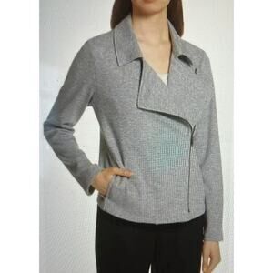 Eileen Fisher Women Size M Moon Herringbone Tweed Knit Motorcycle Jacket