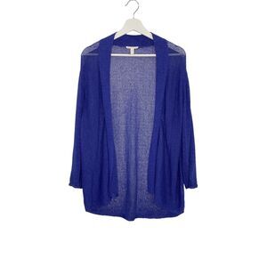 Eileen Fisher Women Sweater Blue Loose Knit Linen Blend Open Front