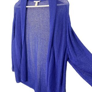 Eileen Fisher Women Sweater Size 2X Blue Loose Knit Linen Blend Open Front