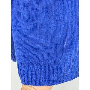 Eileen Fisher Womens 100% Organic Linen Deep V-Neck Knit Sweater Blue Sz Large