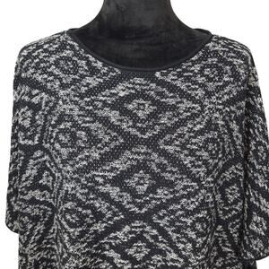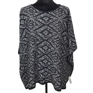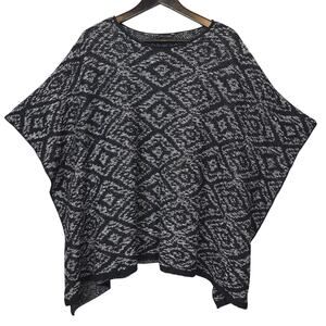 Eileen Fisher Women's 100% Organic Linen Textured Weave Poncho One Size B&W
