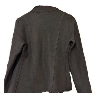 The Eileen Fisher Women's 100% Wool Sweater in size 2X is a stylish and versatile piece perfect for the winter, fall, and early spring seasons. This black charcoal wrap sweater features long sleeves and a solid pattern with leather trim, making it a chic addition to any casual outfit. Made from high-quality wool fabric, this cardigan is designed for women who appreciate both comfort and style. The hand wash only care instructions ensure that this sweater stays looking great for years to come. A very distinctive and highly sought after Eileen Fisher wardrobe piece.