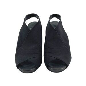 Eileen Fisher Womens 6 Wedge Heeled Sandals Stretch Black Comfort Open Toe