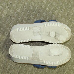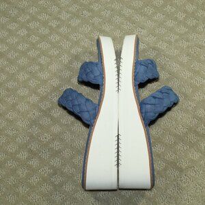 Eileen Fisher Women's 8 Blue Woven Nubuck Two Strap Platform Wedge Sandals