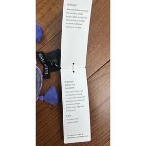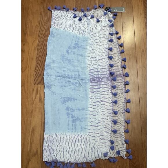 Eileen Fisher Womens Artisanal Silk Tasseled Square Scarf Wrap Blue Purple NWT